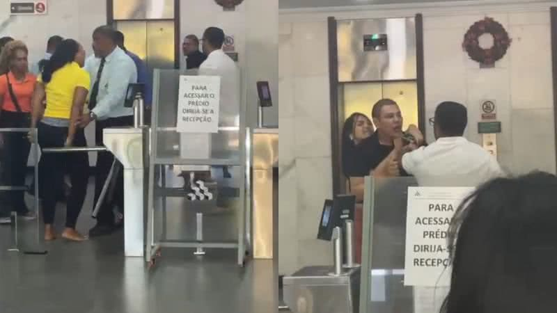 As imagens mostram o homem discutindo com as ex-funcionárias e desferindo um soco em uma delas. Em entrevista ao Bahia Meio Dia, da TV Bahia, afiliada da Rede Globo, as mulheres relataram que caminhavam pelo local com um cliente quando o empresário passou, esbarrou com o ombro e fez ameaças a uma delas.